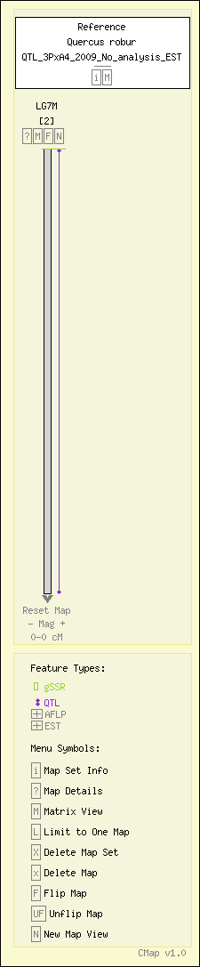 | Quercus robur - QTL_3PxA4_2008_Croissance - LG7F | ZQP9 | gSSR | 0.00 (cM) | Automated name-based | View Maps | |||